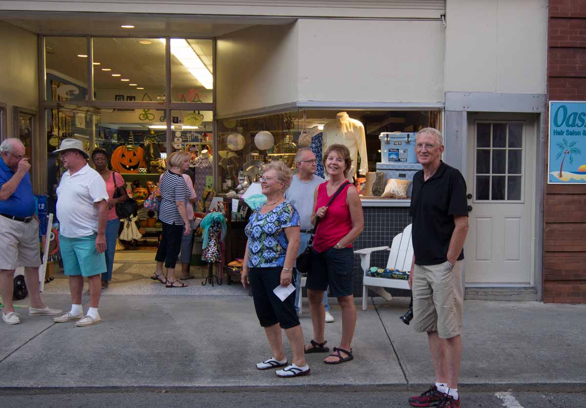 Classic cars were parked on the main cross street. Among others there was an Avanti to die for and the 12th 1955 Corvette off the assembly line. So far we’ve had good luck with the downtown restaurants, and the Grub Brothers was another good one last night. If you’re here you should take in Music in the Street. Monthly every third Friday.