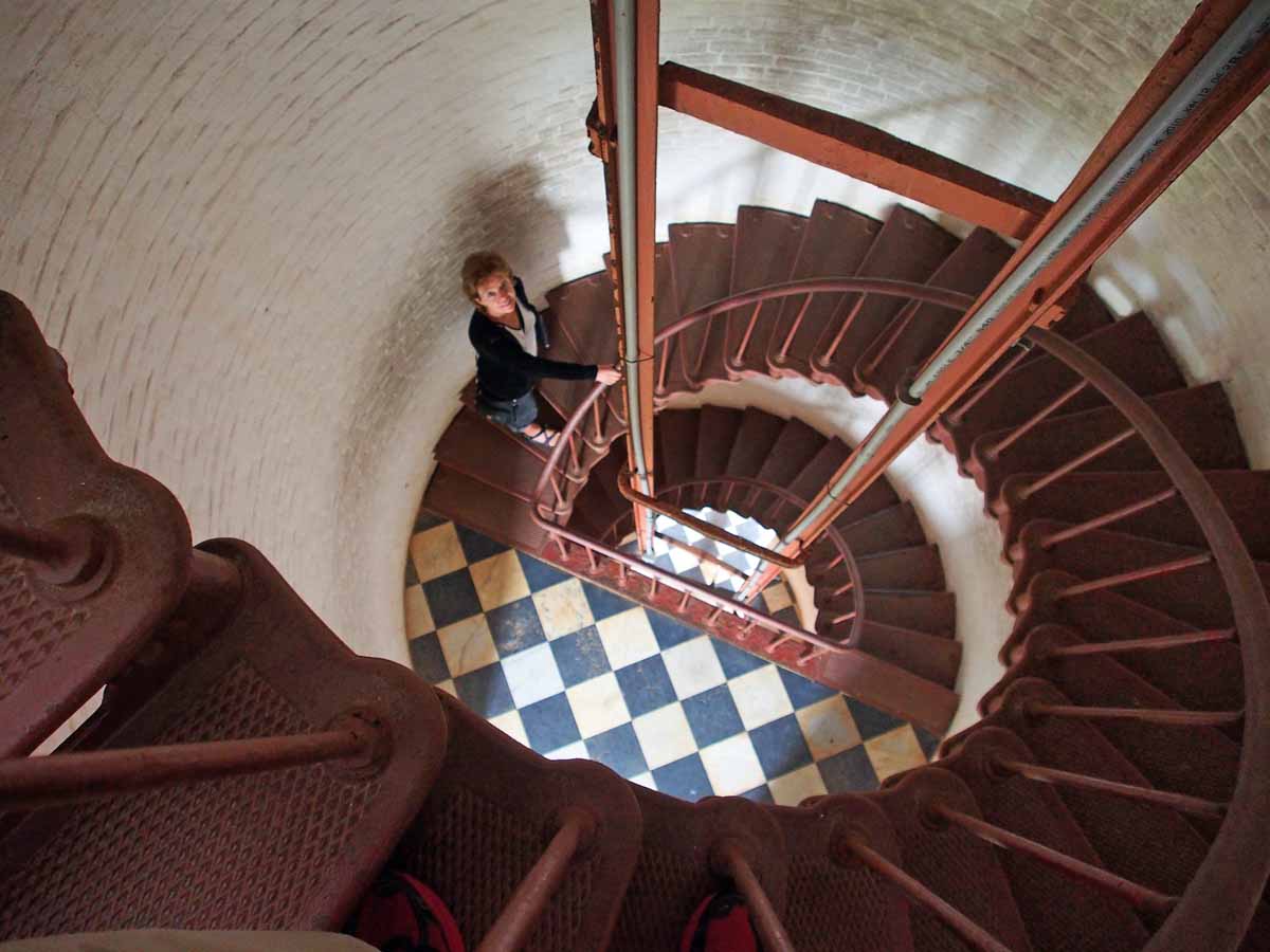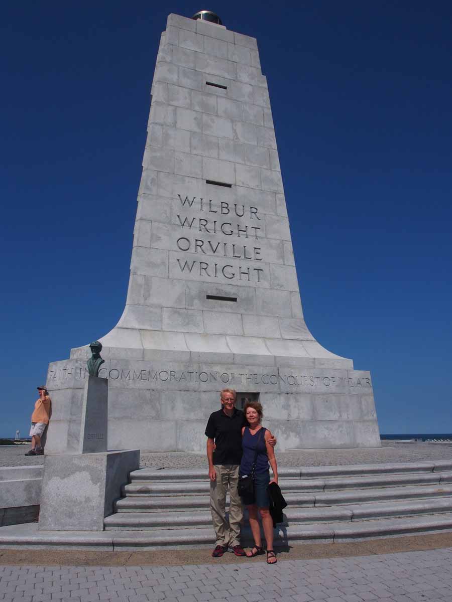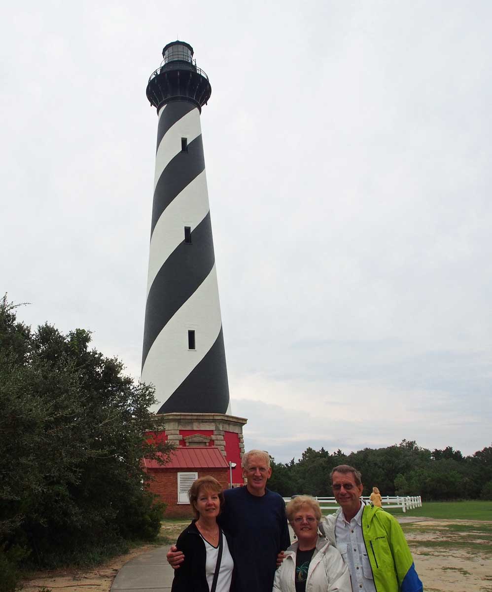 Altogether we were in Washington NC 9 days. On two of those we went to the outer banks and visited several places, among them Kitty Hawk and the Hatteras Lighthouse. I never realized what an effect the outer banks barrier islands had on most of North Carolina’s Atlantic coastline and all the waterways inland. They let some of the ocean in, but very little. All the water west of the islands is brackish, with only 1/35 the salt of sea water. This changes a lot of things, but what we noticed most since Swan Point marina in Sneads Ferry was no tides, and so no currents for us to contend with when traveling and docking.