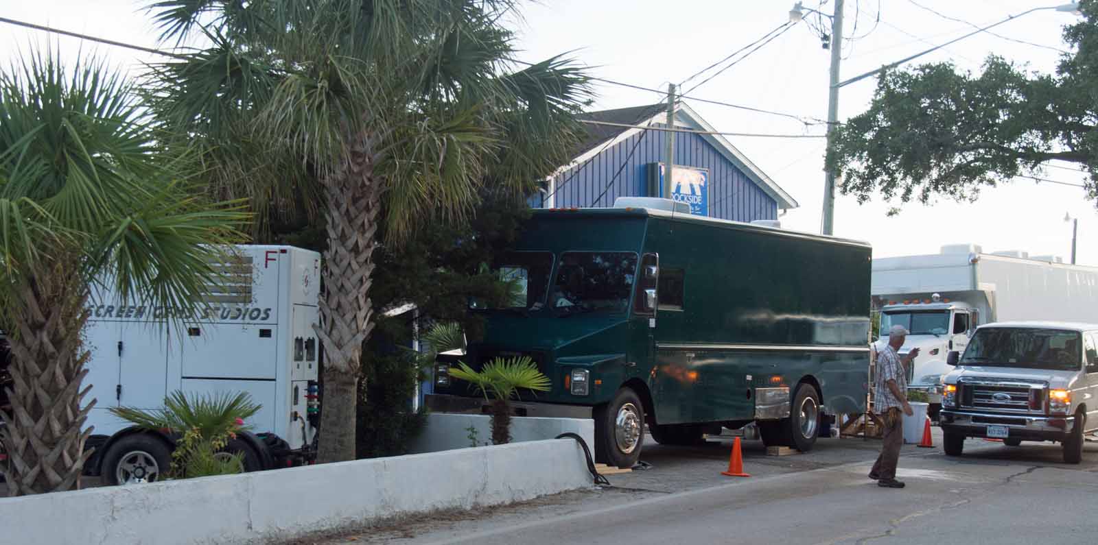 Coast guard guys and some of movie crew’s trucks & trailers
