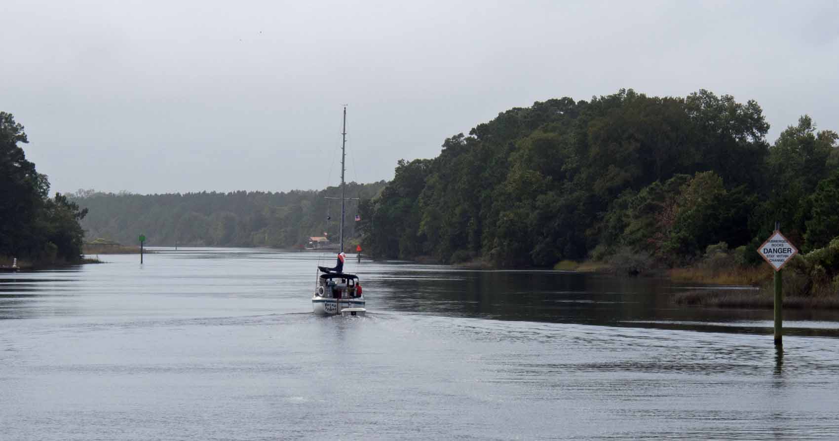 We’ve heard about this from number of people. I talked to a marina manager in Beaufort, SC who wrecked his own boat there. Most ICW channels are dredged from a sand or mud bottom. The problems with these are that currents shift the mud around, called shoaling, which can make a formerly deep channel into a shallow one, or move the deep part somewhere else, where the charts say it isn’t. If you run aground here your keel rests on the mud and you wait for a rising tide to lift you off. Of course it’s really not good to run aground at high tide, but usually then there is enough water then that that should not happen.