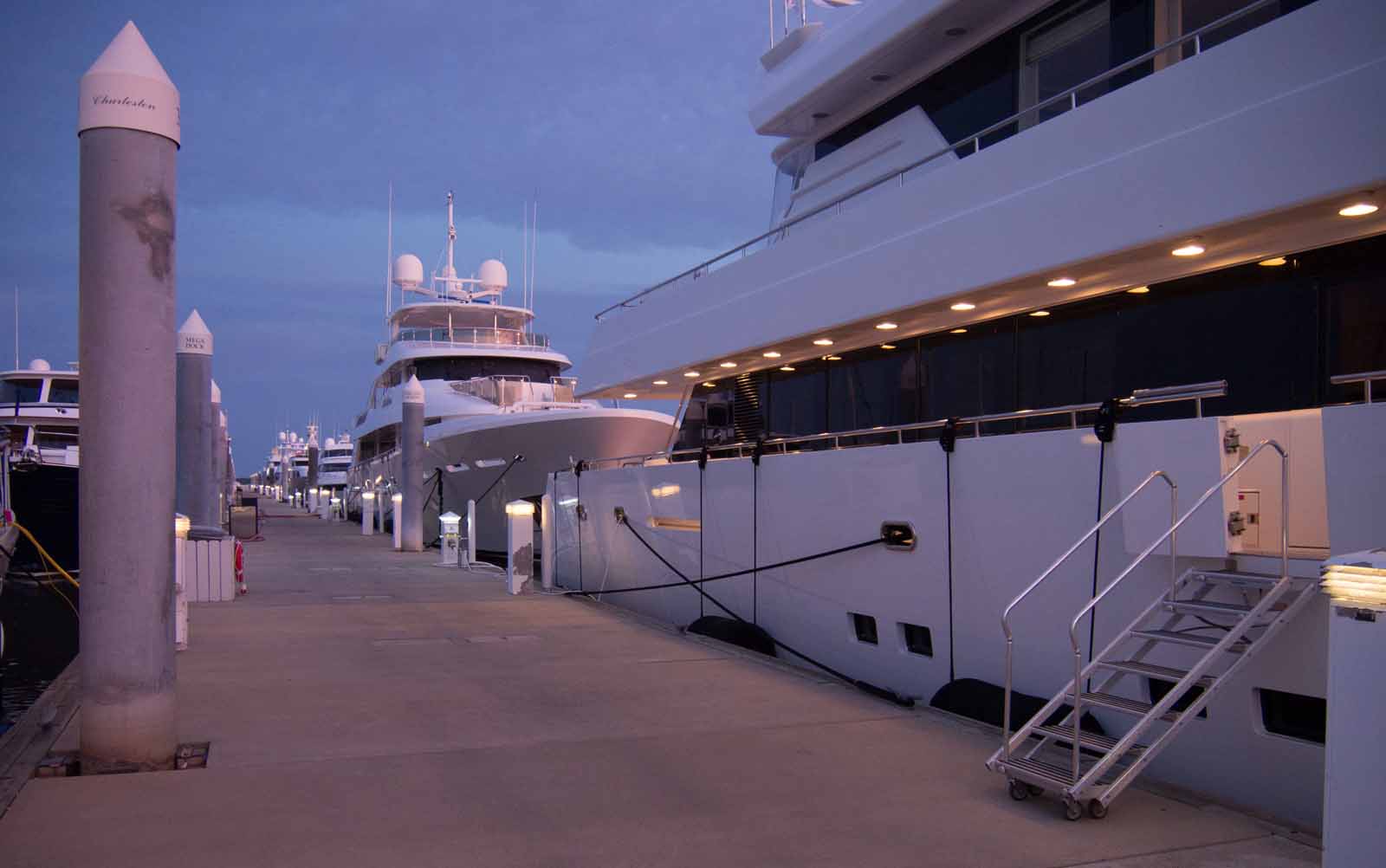 It was a long trip to Charleston. We came directly from Barefoot Landing marina in North Myrtle Beach at mile 354 to Charleston City marina at 470. We left at 6:50 AM and got in at 6:45 PM right at sunset. That was cutting it close. I don’t think we’ll do that again, but we wanted an extra day in Charleston and I had another marina an hour closer where we could have gone if we could not make it. Certainly the longest trip we have made. The ICW did not wind much this time. Google Maps said the road distance between the cities is the same as the ICW distance.