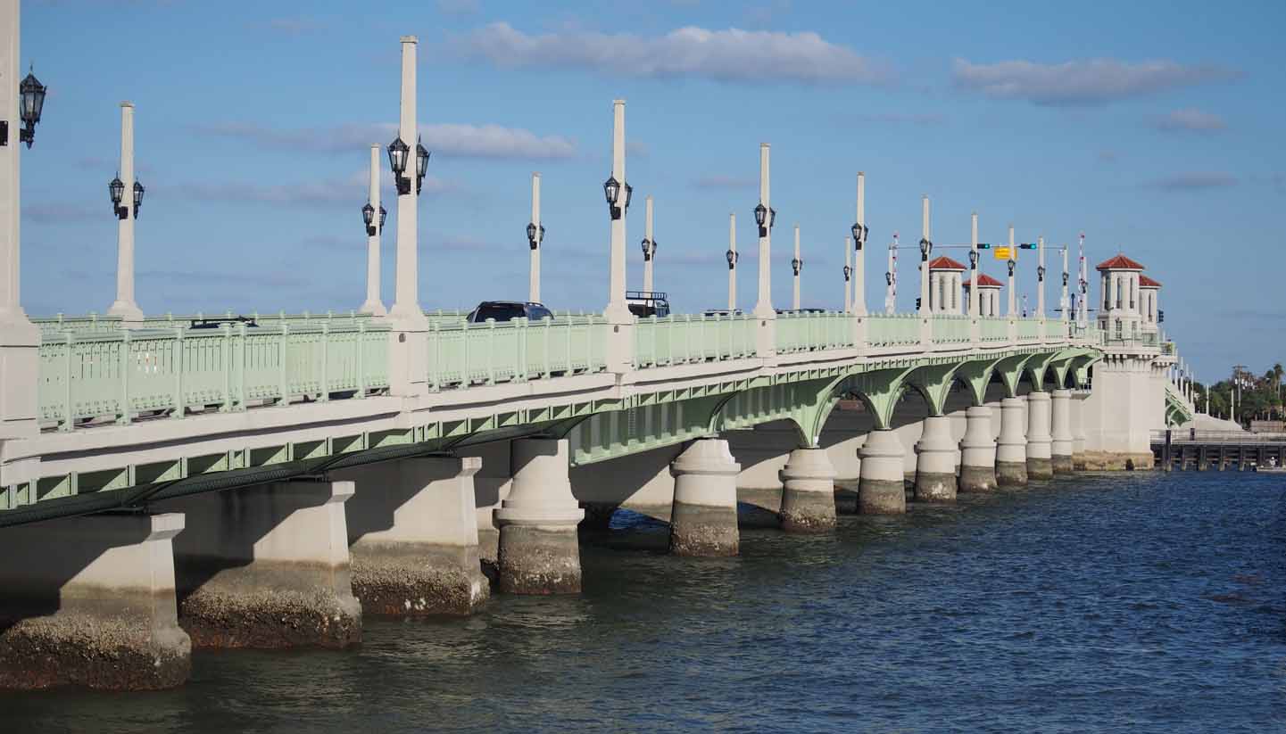 We left early the next morning for St Augustine Municipal marina and arrived at 12:30. We can just squeak under the drawbridge on the north side of the marina, but as we came within sight of the bridge the hourly opening was starting. There were so many boats waiting that when we got there we just merged into the parade. The two sailboats ahead of us took such a long time gracefully gliding on through the bridge that I thought it would close before they got there. I felt bad for the drivers of the cars having to wait.