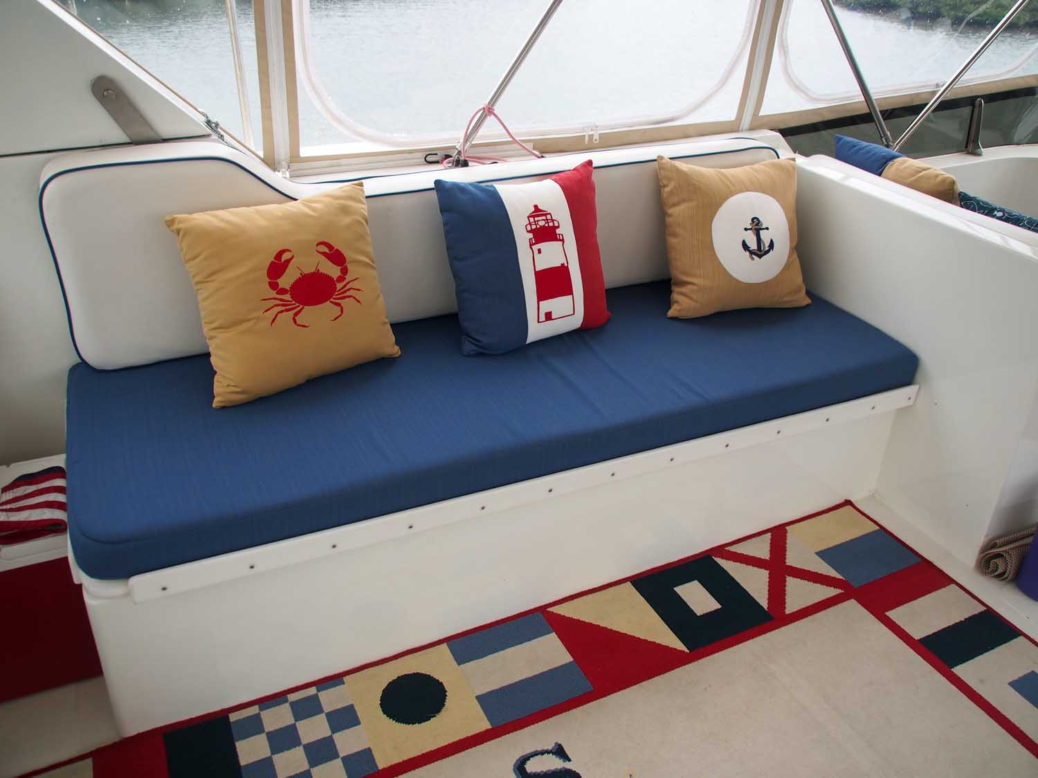 Sue wants to show her new pillows to her sister Judy. Along with many other things they are part of the recent work we did on the boat. Sue has really taken to living on a boat, and misses it when we travel away from it more than any other home we’ve had.