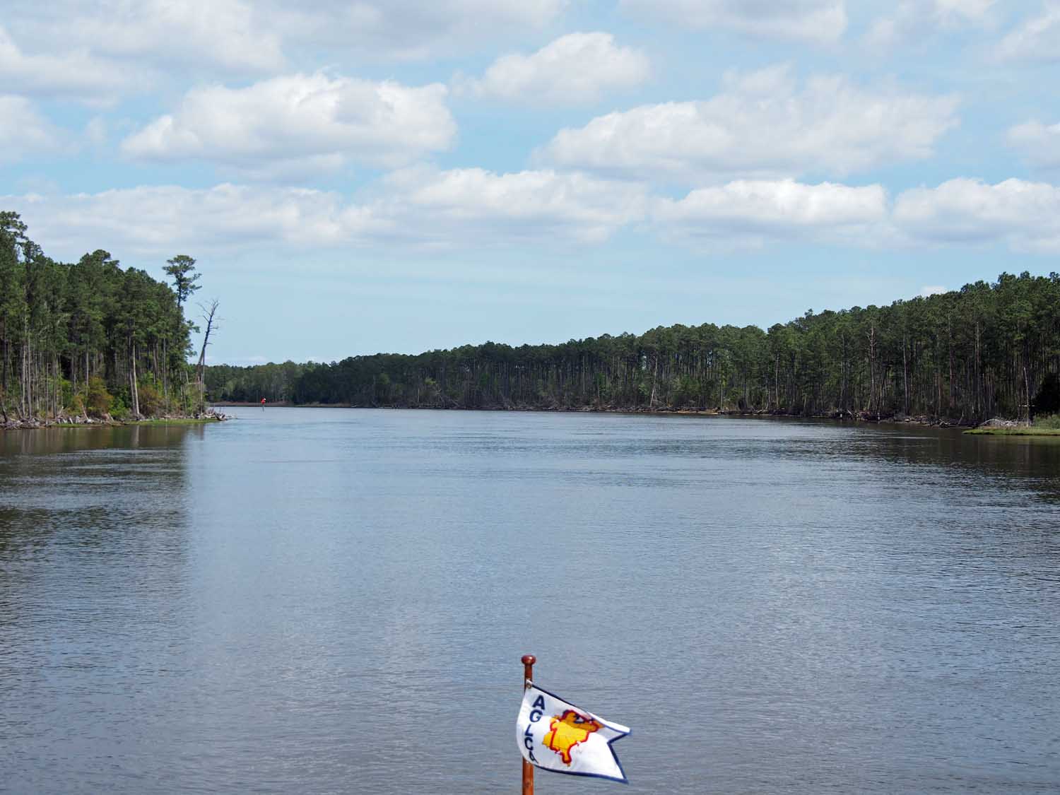 We left Dudley marina at the late hour of 8:00 for a good travel day with great weather. No drawbridges, no groundings, no excitement at all. The scenery was great. The marshes of Georgia are nice but we like the trees of North Carolina even better. We pulled into Oriental Marina on the Neuse river at 1:30. The Neuse averages over 3 miles wide with nearly all of its area at an even 20 foot depth. Just enough of the winds bleed over from the outer banks coastal area to make this the “sailboat capital of the world” according to the locals. We’ve been to Oriental once before, but that time we stayed at Whittaker Pointe marina.