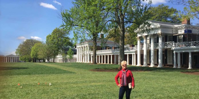 A few days before leaving Richmond I called and got a 2 PM “behind the scenes” tour that includes the normal downstairs rooms but also goes to the 2nd and 3rd floors of Jefferson’s house. Monticello is only an hour from Richmond, so we got there in the morning on Monday April 27 and first visited the University of Virginia that Jefferson designed. After that we had lunch in the Miche tavern. We had a great guide for Jefferson’s house and learned and saw a lot.
