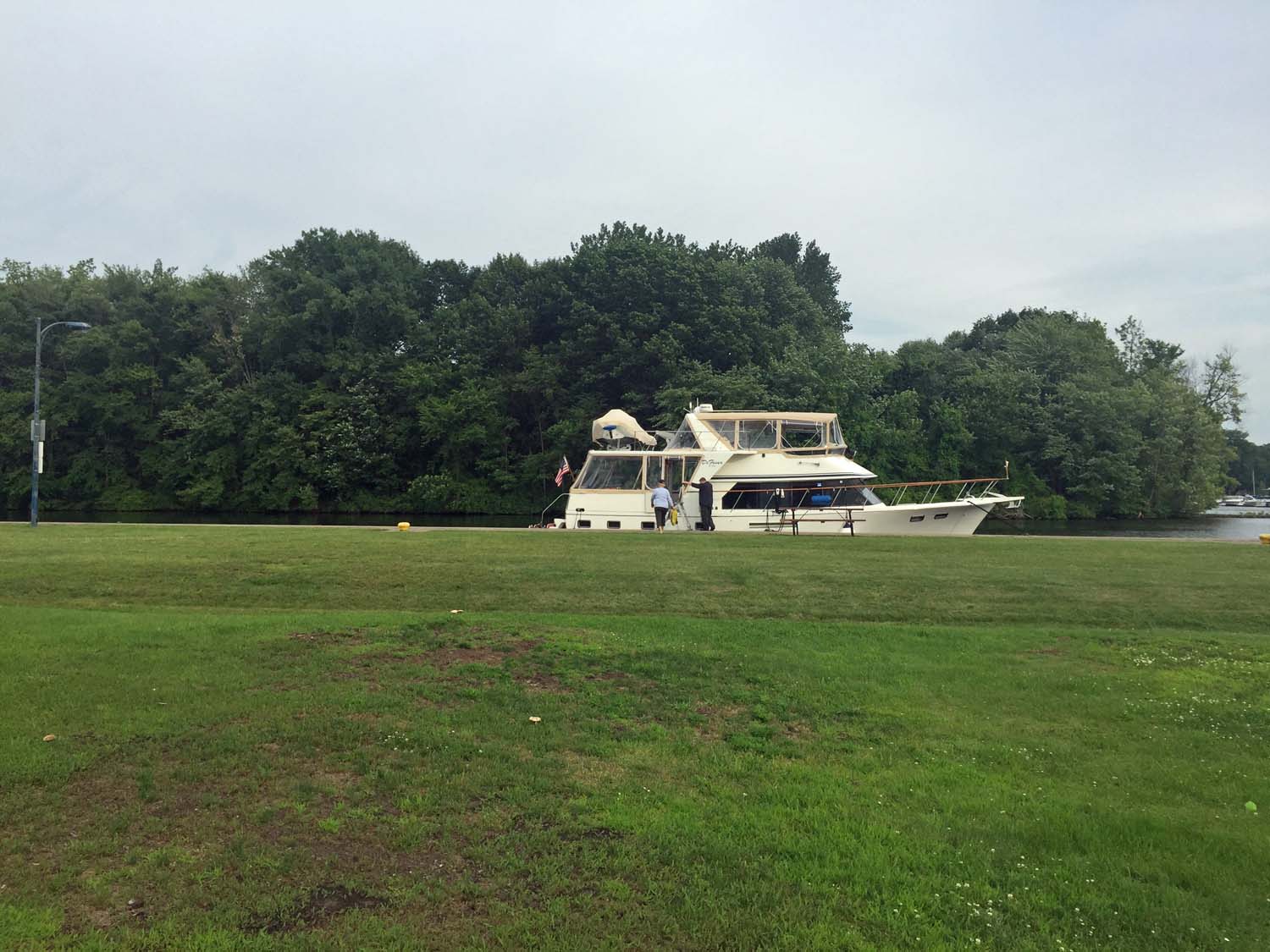 No marina that can take our size boat at the east end of Oneida Lake, so we’re on a long wall that runs from the entrance to the lake back past an amusement park and a city park. No shore power or other facilities, so it’s like being at anchor except we can walk off the boat.