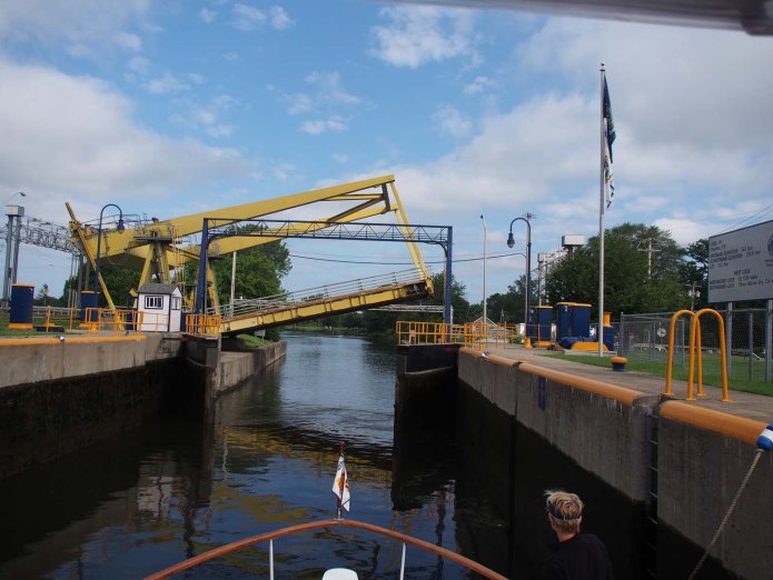 There were seven locks in all with the last three in a row just before we stopped for the day. That gave us a total of 29 locks on the Erie and Oswego canals, plus one lock on the Hudson just before Albany. That’s 30 locks from NYC to Oswego.