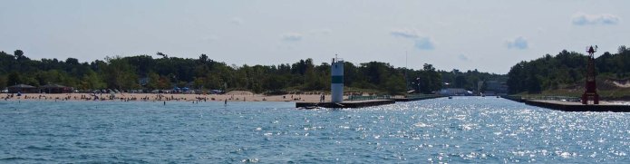 The forecast was waves 2 – 4 feet all day today. I think we saw the 2 this morning and the 4 later today. We did not get away from Manistee until 7:30. Lake Michigan seems different and I haven’t seen great advantage in starting at the earliest part of the morning here. We arrived in Muskegon at 3:30.