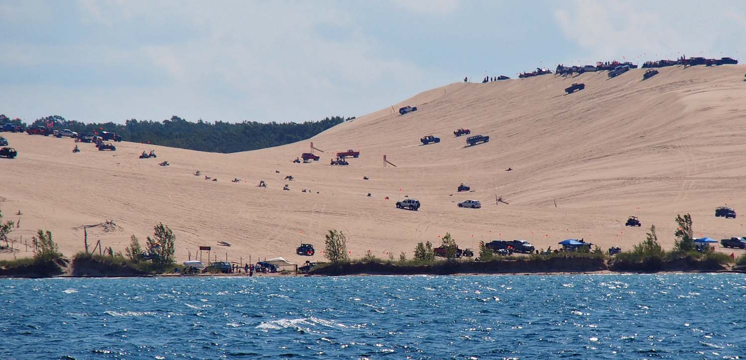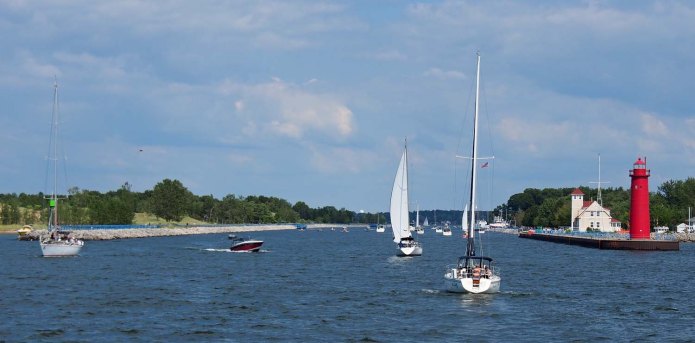 What a place! As we approached the channel we saw many sailboats out in the big lake enjoying this good weather day. There was a lot of traffic coming into the channel. Some of the sailboats insist on taking it under sail, making them a bit harder to avoid. At channel right just before Lake Muskegon is the WWII submarine USS Silversides. As well as an older coast guard ship and associated museum. The channel exited into Lake Muskegon which is over 2 by 5 miles and was just full of boats moving in every direction.