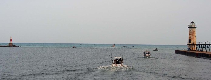 Last night one of my apps said wave height outside the Manistee marina right then was 3.3 feet while outside at Muskegon was 1.3 feet. That seemed to promise that things could be easier down south.