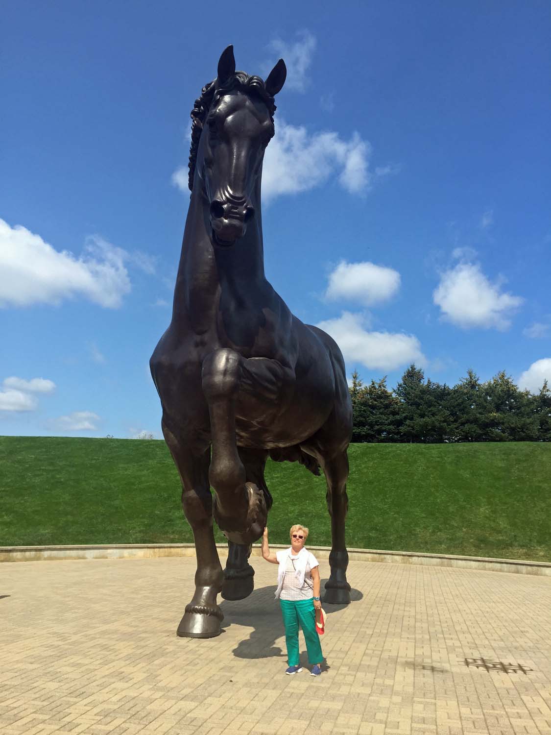 Sue with the Leonardo Da Vince Horse at Meijer Gardens in Grand Rapids. A great stop on the way back