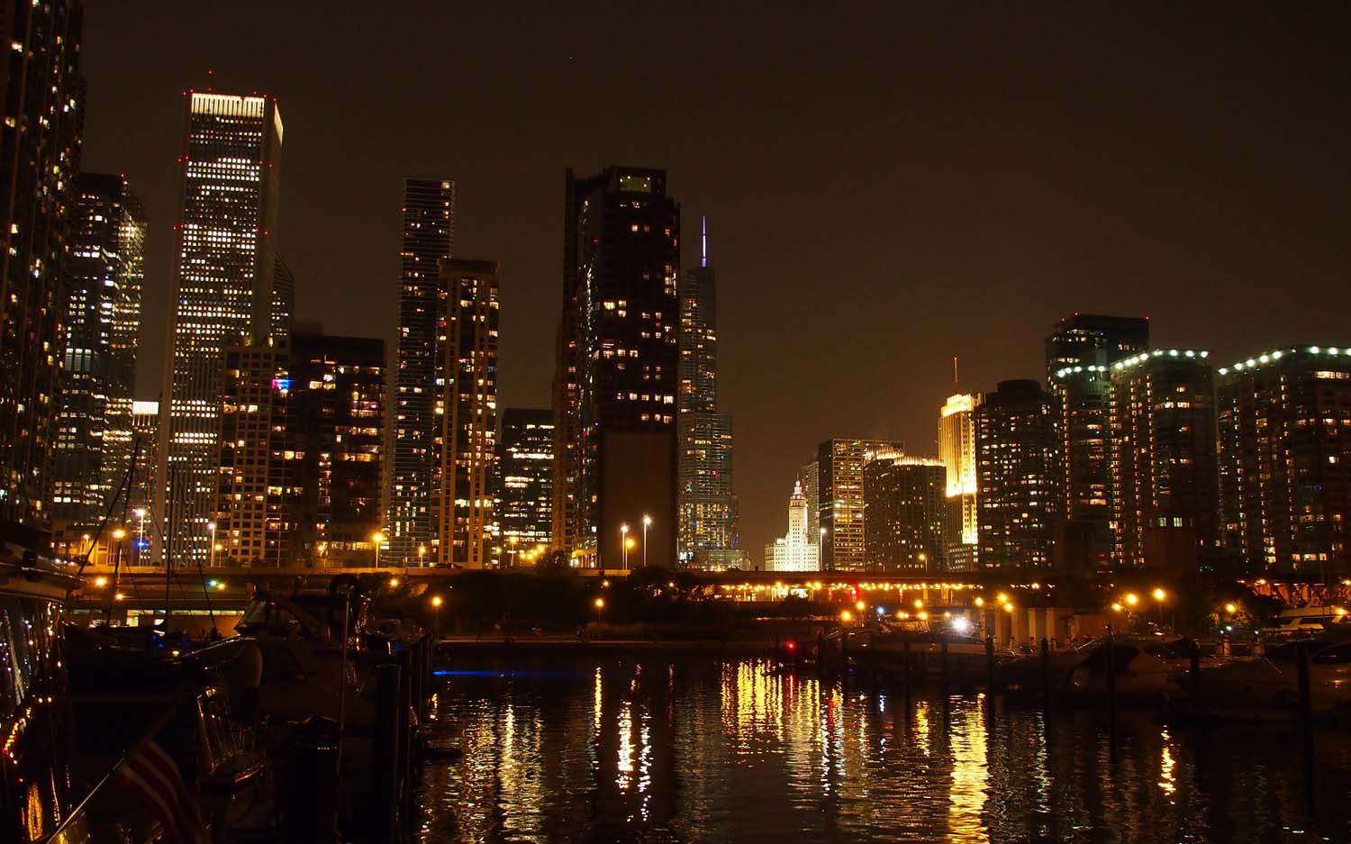 The mooring area on the way into our marina from Sears Tower. Our marina is left of it behind buildings.