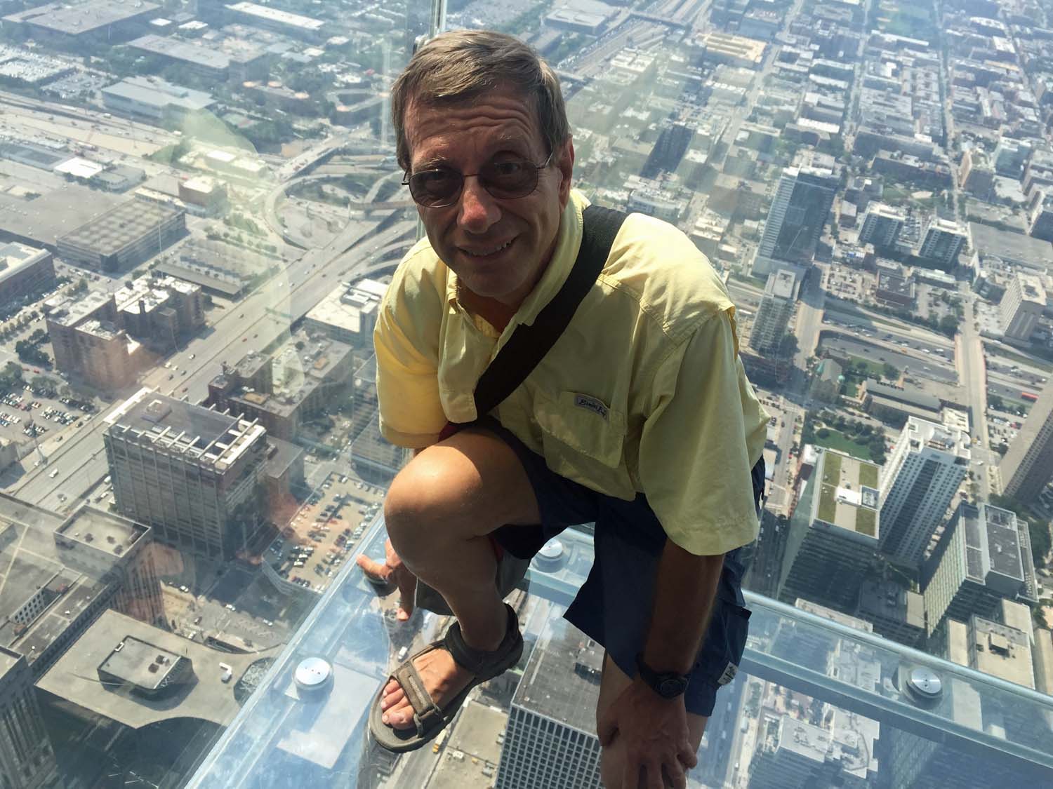 Waited in line to take selfies in the glass box in Sears Tower. Didn’t work, but Sue’s pic of me turned out.