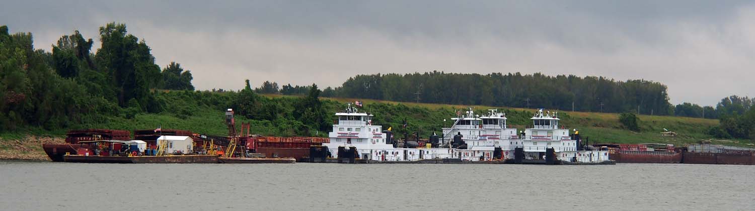 The most commercial traffic we have seen has been on the Ohio. Here tugs push barges into tie up positions.