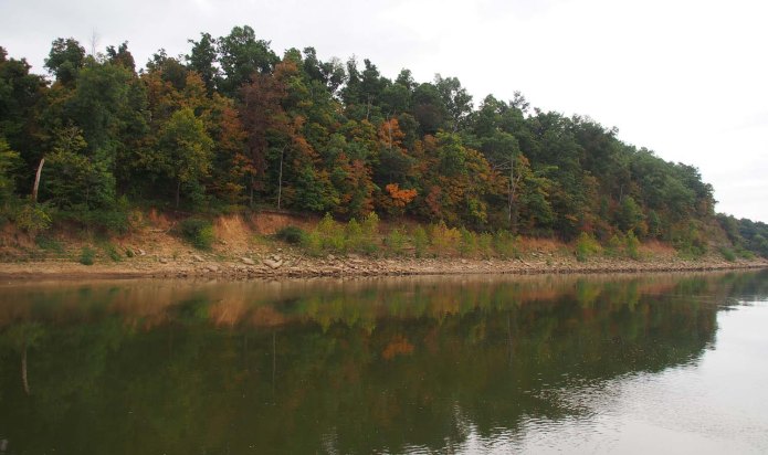 We stayed at our Cumberland River mouth anchorage a second night. That evening three other loopers came in one by one, one settled some distance in front of us and the other two to our rear. The weather was overcast but warm enough for us both to spend a lot of late afternoon early evening time on the bow. Few if any bugs made that work pretty well, one of the advantages of traveling in the fall. All was quiet. The other boats were too far away for us to call out to each other. Our genset was not needed until much later, and if the other boat’s were running we could not hear them. Dead quiet until the crickets started up.