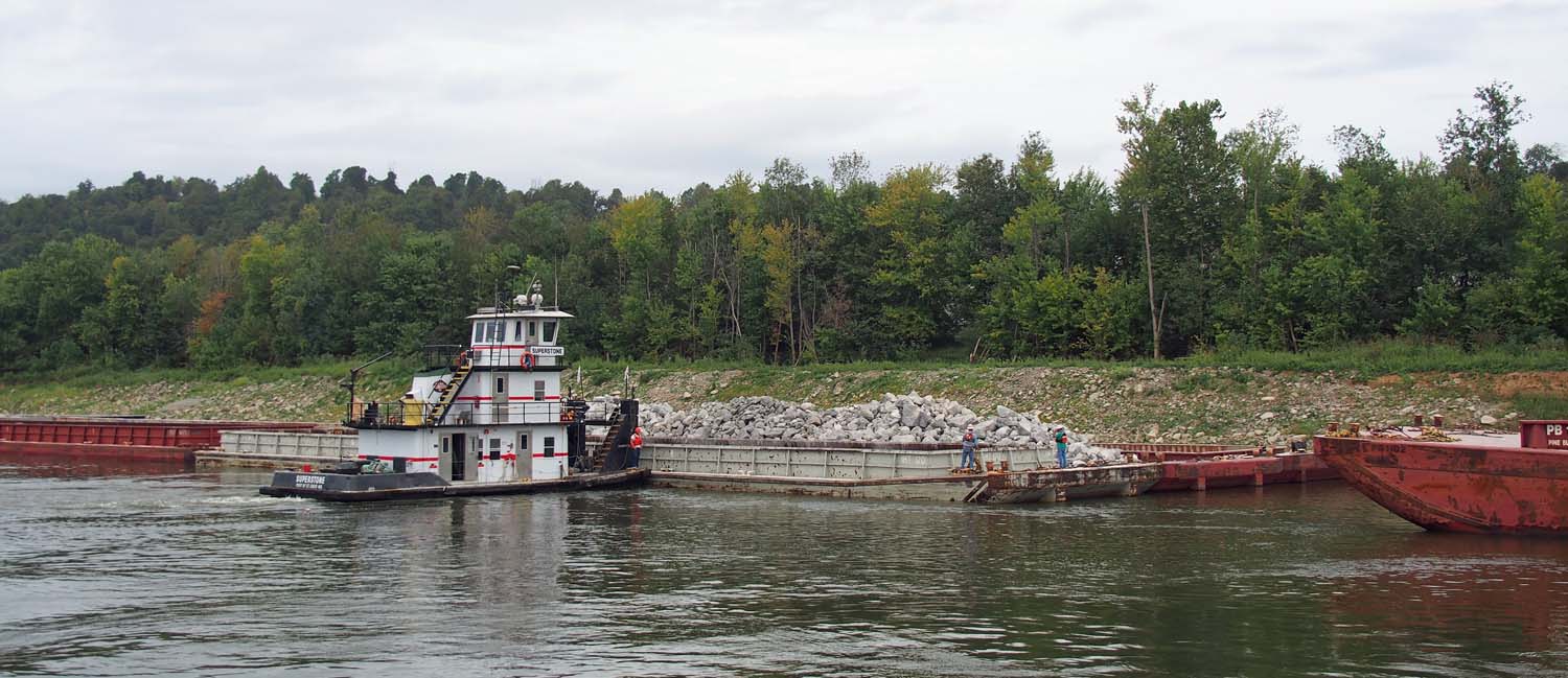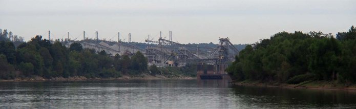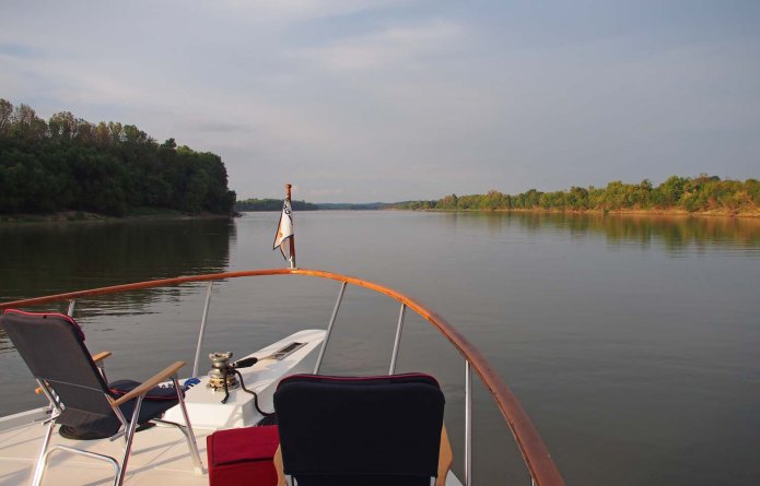 We pulled up the anchor and were underway up the Cumberland River before 8. It’s narrower than the Tennessee and 10 miles longer. We heard the Cumberland was more country like and natural. We did pass a gravel business and a few places loading wheat into barges, but no major tows. Mostly low hills and trees.