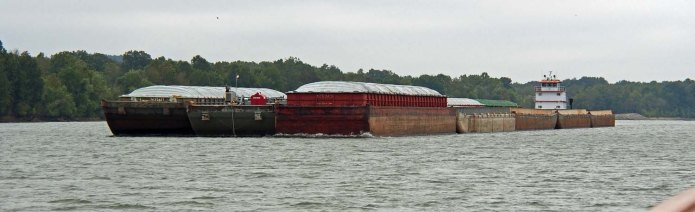 There are few tows on the lake or river. We pass maybe one each way per day. While this is an area of pleasure boating and lake homes, we saw even fewer private boats except for the small “bass boat” fishing boats. It was Sunday, so even with the cold weather we would see those. The 53 miles to Double Island was scenic, but we were glad to enjoy it out the windows from downstairs.