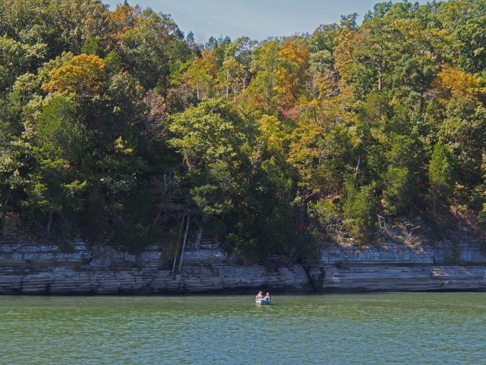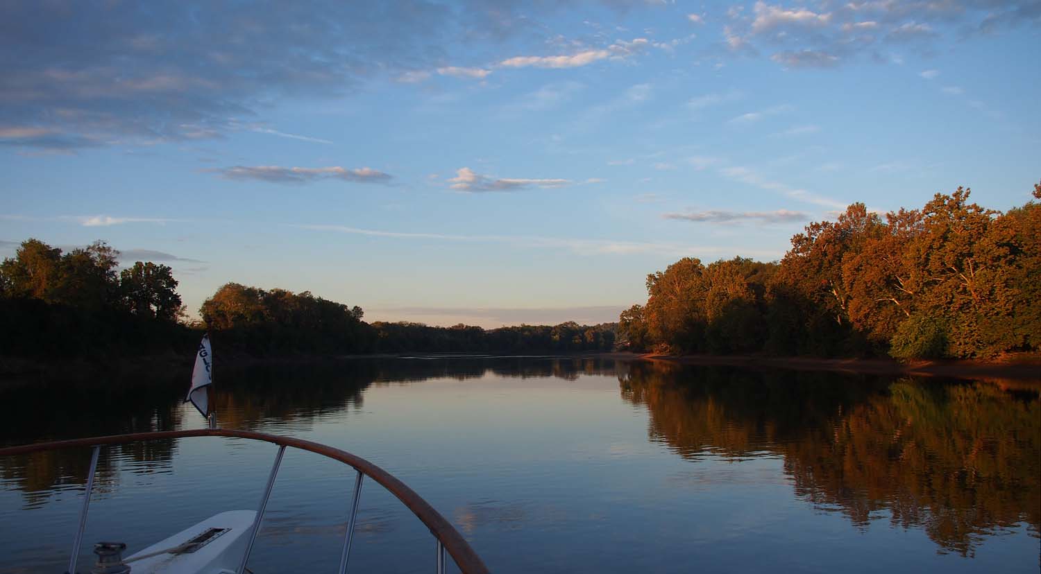 This time we got a very pleasant travel day with great scenery, mainly forests, hills and rock formations along the bank. We noticed less fall color. Maybe we are outrunning it as we travel south.