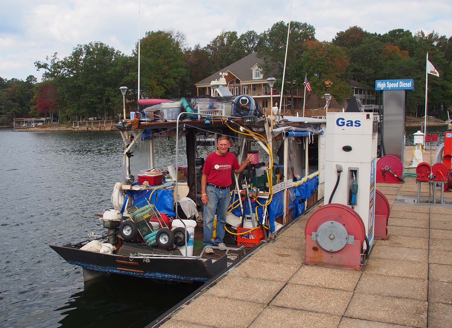 The marina has two courtesy vans it lends out for two hours at a time. You need that much time to go to the nearest large supermarket in Corinth MS 20 miles away. We borrowed it and did our resupplying, then called to find no one else wanted to use it, so we went to Freddy T’s for dinner. Freddy T’s is a great place. I liked the lasagna and Sue had Dave’s fish. Both were very good. Our waiter had relatives in Coeur d’Alene where we lived awhile ago. His great grandmother owned the Paulson building in downtown Spokane and lived in the mansion on top of it. He had been there many times. I had always wondered about that home up there.