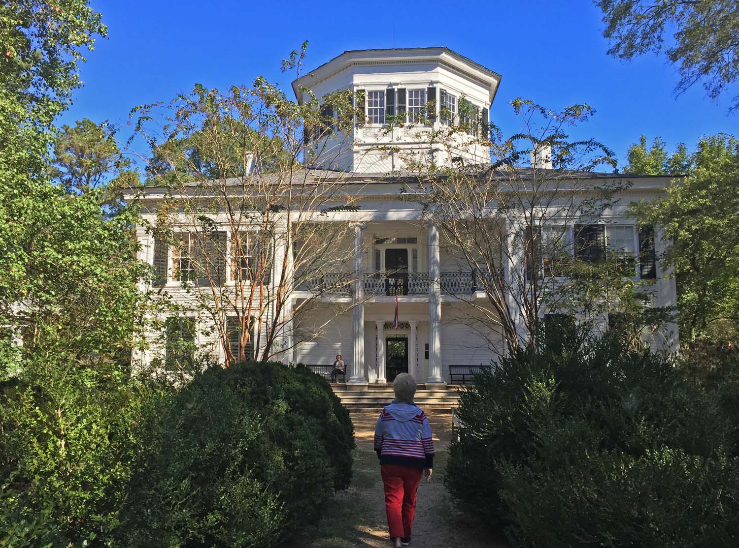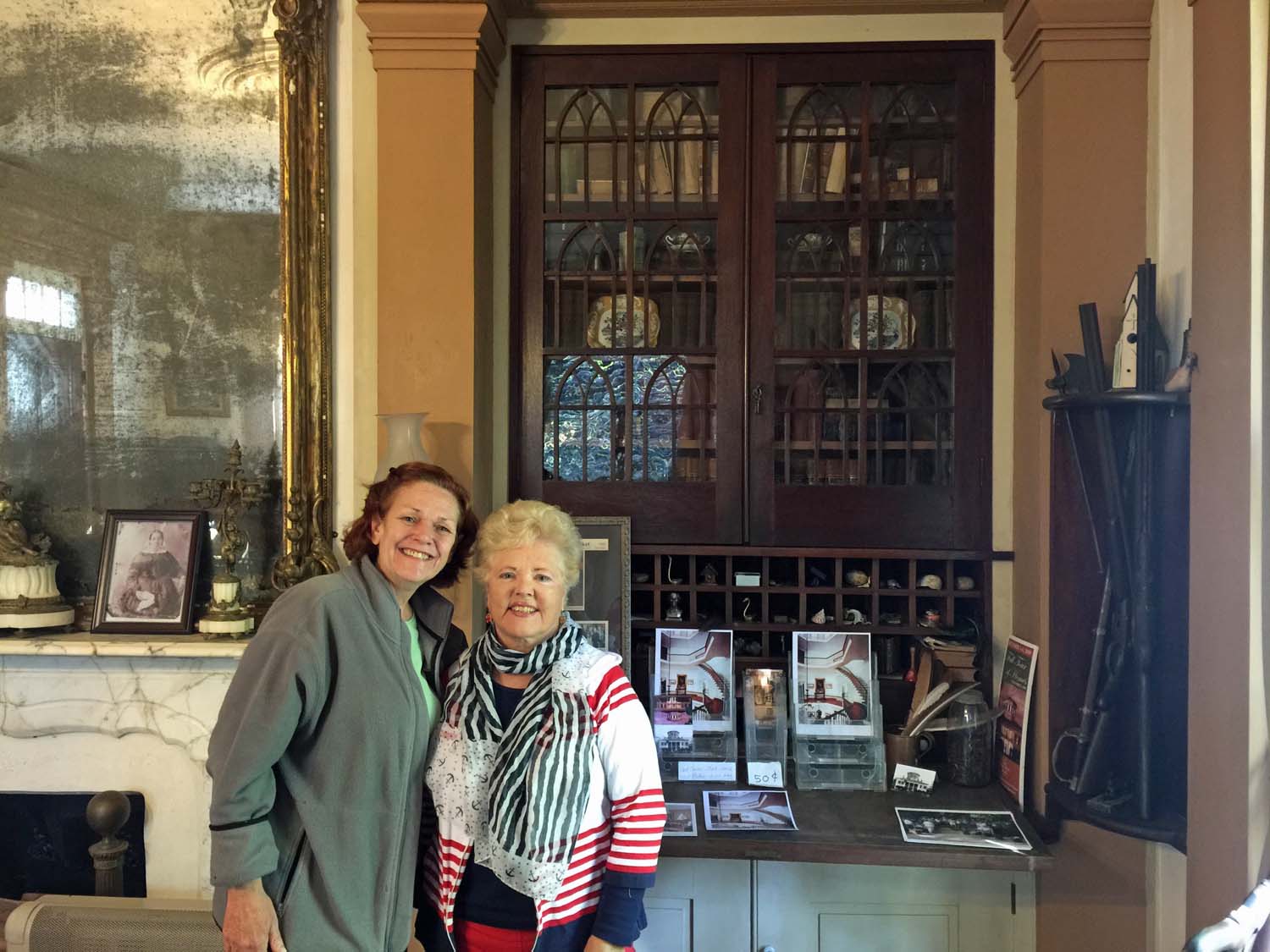 Sue on the porch of Whitehall, and elegant southern town home in Columbus.