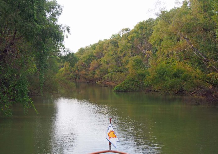 The channel was very narrow with tree branches sometimes scraping the hull as we idled along. There was absolutely no way we could have turned the boat around. Had the channel become too shallow we would have to back out all the way, which would be quite a feat.