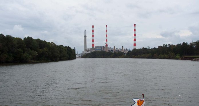 The last of a number of power plants we passed. I think most are coal fired and use barges to deliver the coal.