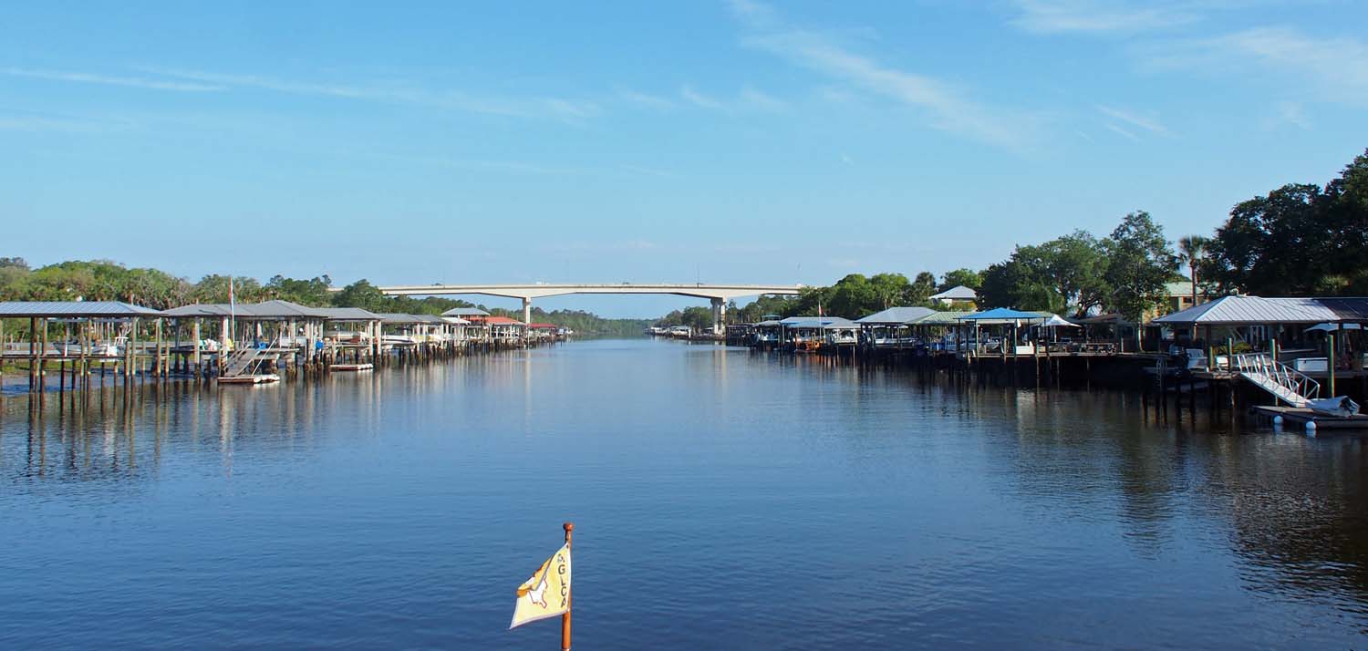 Coming into the Georgetown harbor. Keep right of the moored sailboats and dock just before the 3 story condo to the left.