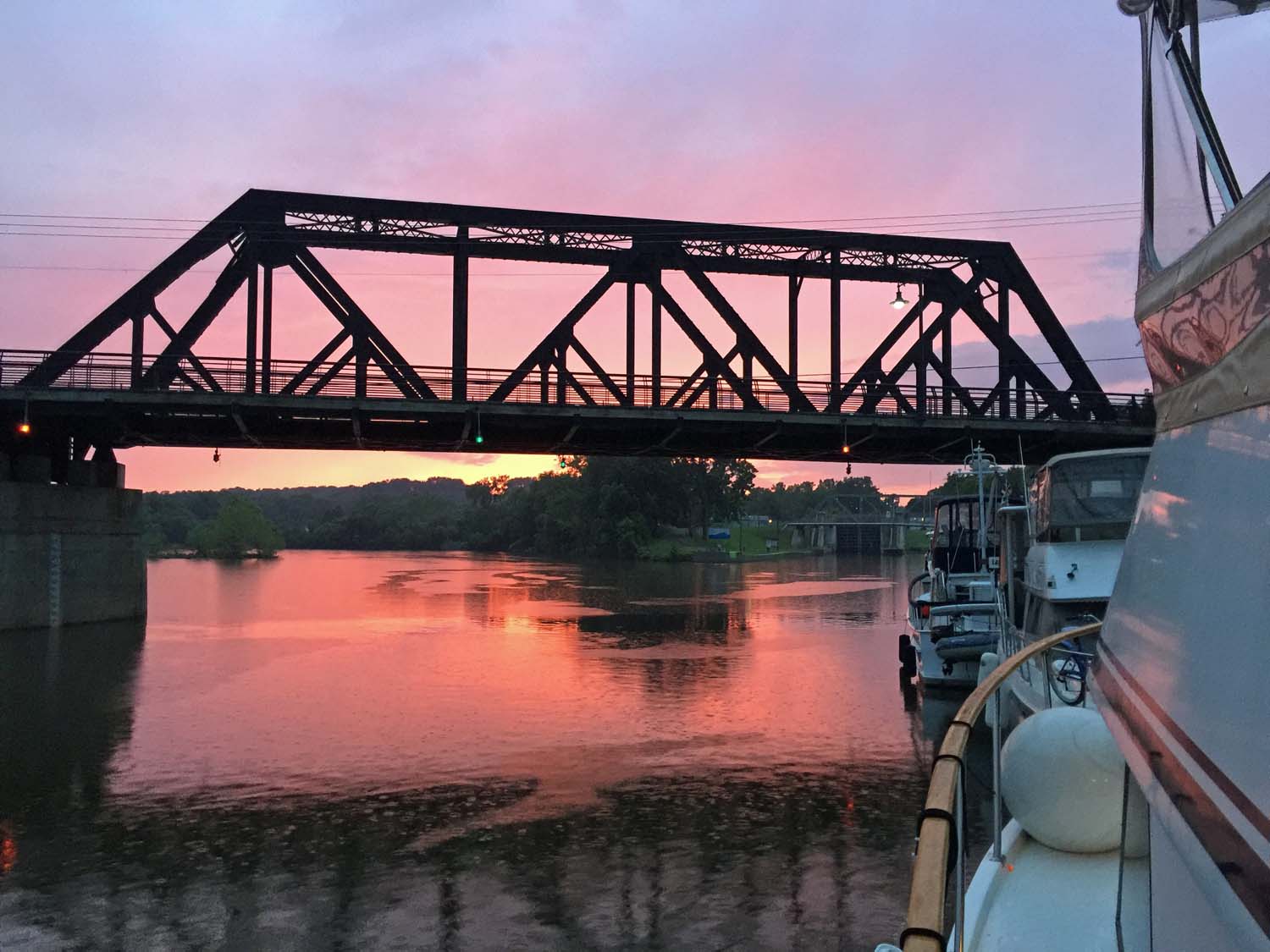 We’re at the free Waterford town dock as before, just a few hundred feet west off the Hudson with a few hundred feet more to the first lock, E2, of the canal. The Mohawk River, which has been dammed to make the canal, gets wide here so there is plenty of room for the town docks, the lock entrance and a lot of open water.