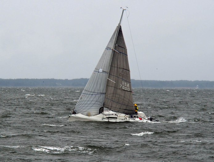 Can’t use the camera when really crashing, but took a few pics when calmer. There were a few sailboater (it is Sunday) who maybe like this weather. This one had more sail up than most of them.