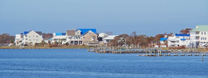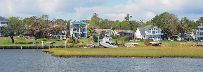 Our good weather was holding as we left Beaufort at 7:30 and traveled the ICW to Bridge Tender Marina in the outskirts of Wilmington NC. We watched for logs and wood floating due to recent high water but saw nothing. We did see a lot of damage to roofs and to landscaping in front of homes. A few homes were boarded up to prevent floodwater intrusion but we couldn’t see much flood damage. That may be because nearly all the homes along the ICW in this part of NC are fairly new and build higher up.