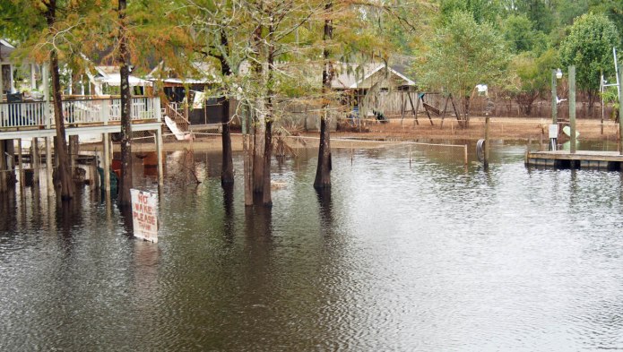 That following current that was busily draining the ICW in that area was great for us. We could sail along at a good speed with minimal engine power. It was good for those living along the ICW because the water was up to their house. Any significant wake from me would have crashed through their front door! This area had the most extreme high water of anywhere we have seen, and we’re told it is down considerably from the peak. Looks like those people already had that water through their front door, but I’m sure they didn’t want any more.
