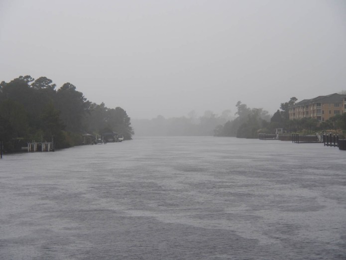 Six miles north of Georgetown the rain came down so hard we could not see the water just off the bow. We’ve had low visibility in this area before, but this was worse. I slowed to idle, turned on the radar and checked the weather. The radar was good to about 1000 feet out where what is called “rain clutter” started taking over. I assumed that was good enough because if anyone else was stupid enough to be out there they would hopefully be going very slow. The weather radar showed the heavy rain could not last more than an hour, about the time it would take to get to the Georgetown channel entrance at my slower speed.