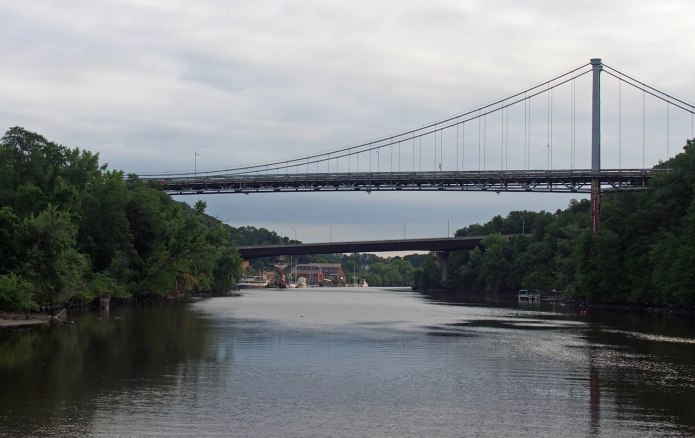 Later on our way to Philadelphia we drove the slow route through south Jersey and saw no new houses. I’m not saying there aren’t any, we just didn’t see any. No signs advertising new homes or subdivisions. We also saw a few abandoned factories. We drove right along one for a ways. I’ve done no analysis, but would guess the south Jersey area has not grown, maybe even shrunk, post WWII. This is not so different from towns we saw along the Erie Canal. It was just pushed in our faces more by all the neon lights and activity in the beach area.