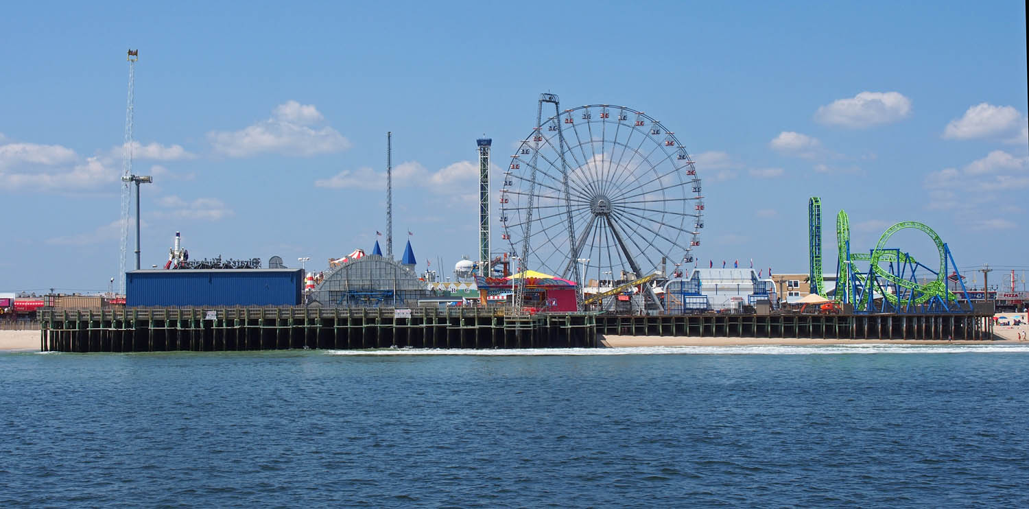 * A more detailed search on Google Maps showed a Day’s Inn & a Howard Johnson toward the north end of the 6 mile long barrier island. Three Dunkin Donuts are around the amusement park area. We never saw any of those, but did see a McDonalds near the bridge to the mainland, about a mile from the beach. Still not much for what appears to be the major beach resort area for the whole state and beyond for more than the last hundred years.