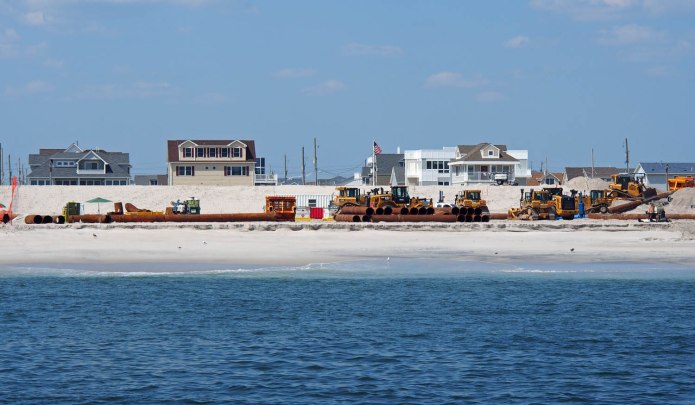 This time we also got down to the beach. The sand was fairly steep at the southern tip of New Jersey and signs warned of injury from the waves. They broke quickly and right at shore so that even the small ones could slap you around a bit. Just as we had seen along the way coming down, they maintain a level terrace mid beach where most people sit.