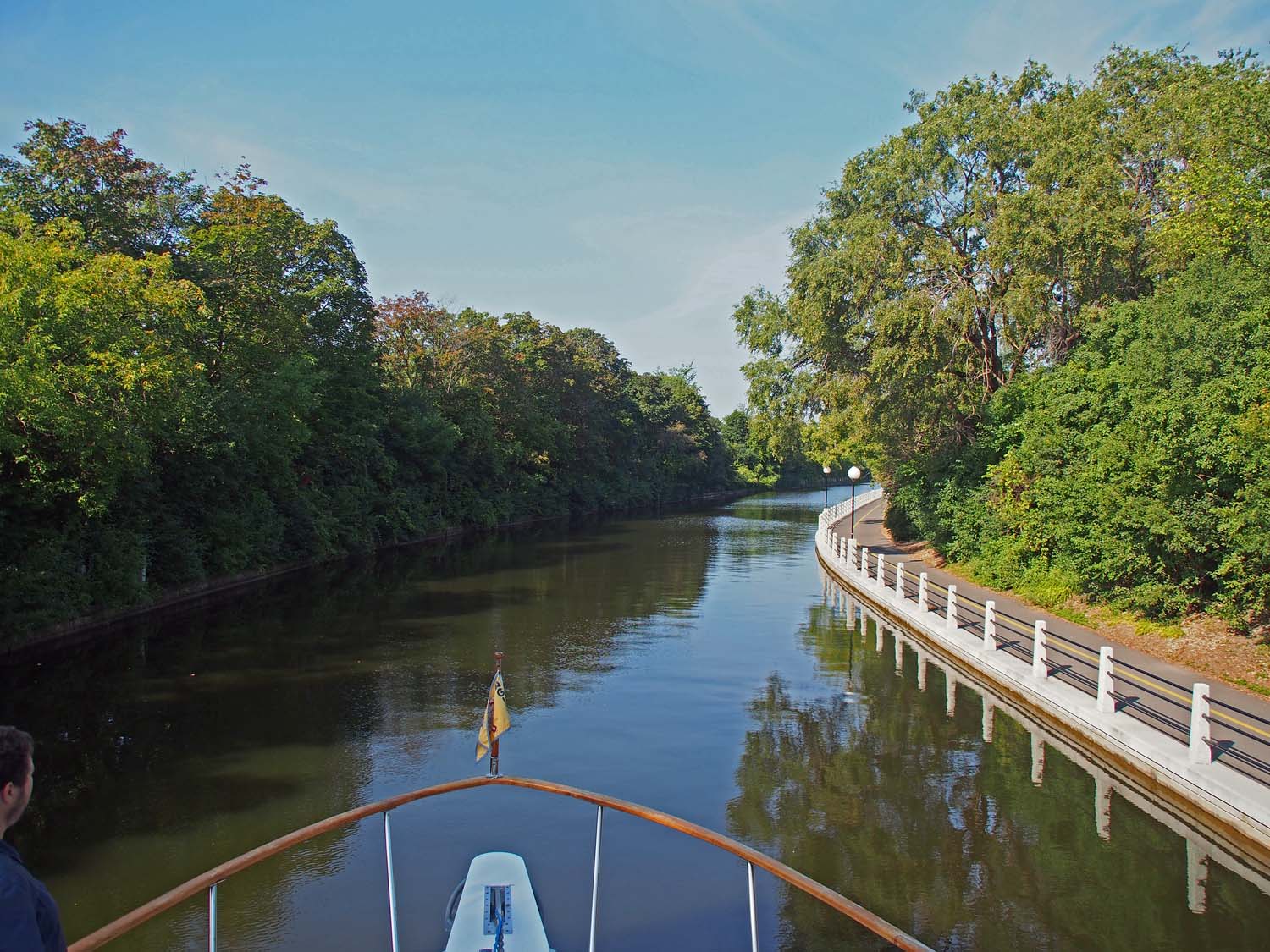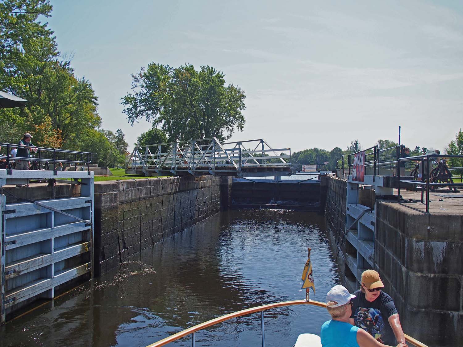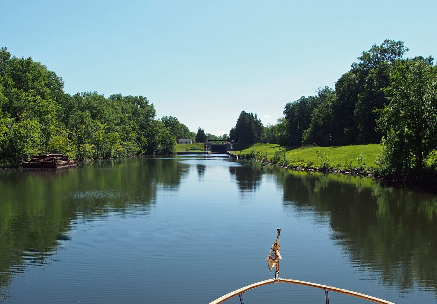 We took a longer ride this time, continuing past Sylvan Beach for 40 more miles, through 4 locks, E22 – E19, to the Village of Ilion Marina. Ilion is probably the first decent place to stop past Lake Oneida. We did pass Rome, but last year we found it to be a difficult stop. We’re in a small “resort” with a concrete wall along the south side of the canal. They get more business from the motorhomes and trailers than boats, but there’s decent power, water and restrooms. Our next few stops may not have that.