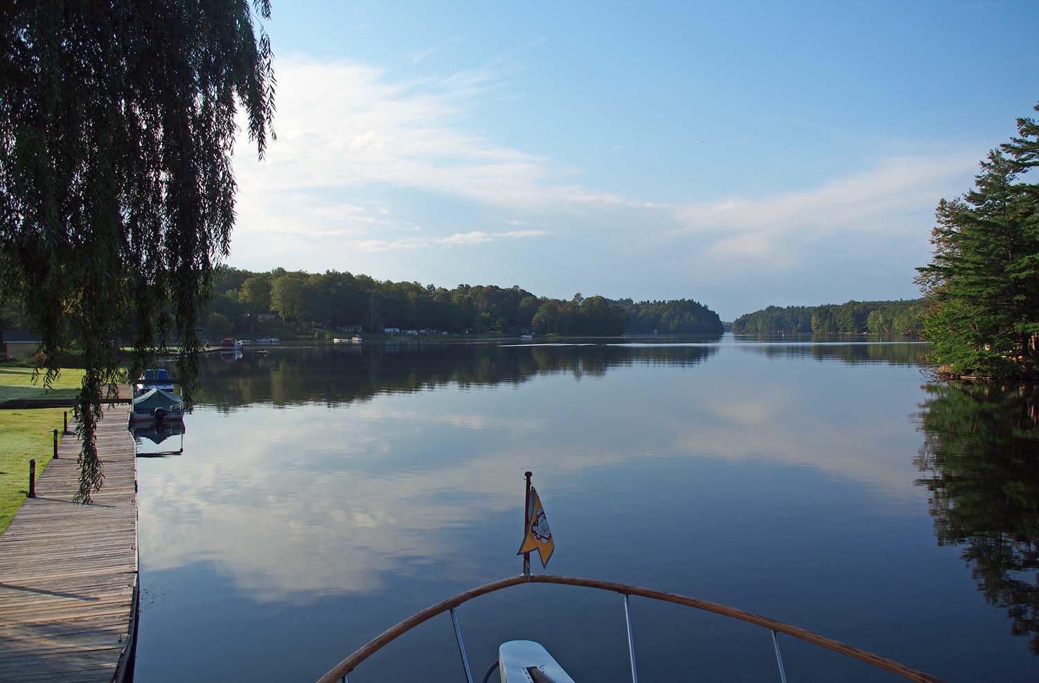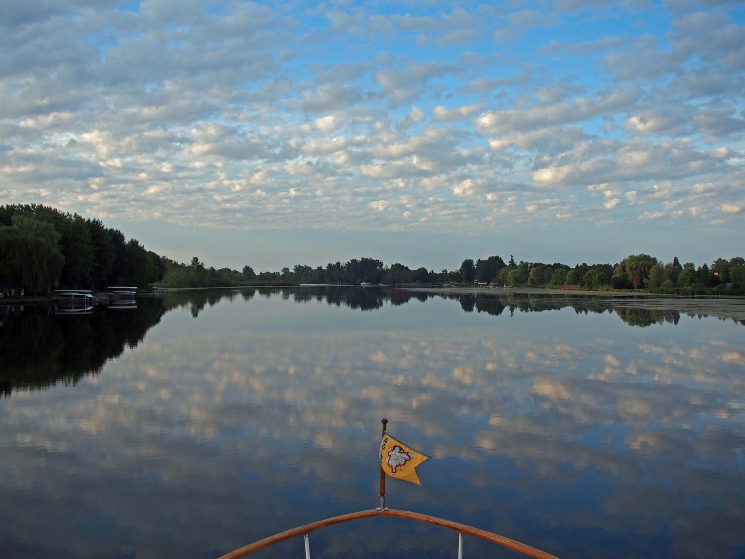 After the repair Wednesday morning we still started back across the lake before 8 AM. This time the packing was perfect on both sides, running cool with just a steady slow drip of water. The weather was even better than Tuesday, sunny but not at all too hot with maybe a slight wind at our back. I thought about how great boating can be when everything is working.